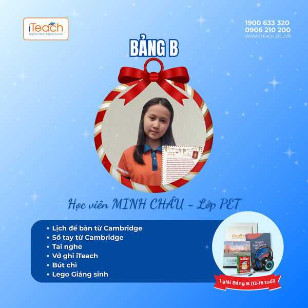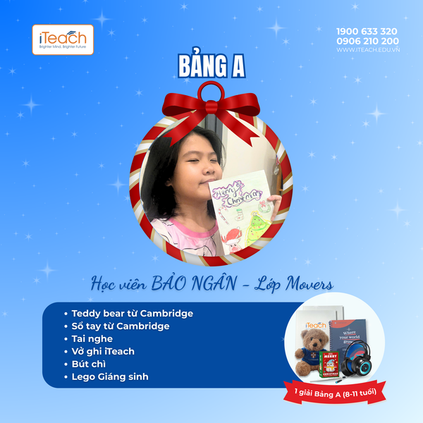 Giáng Sinh 2025 tại iTeach English đã trở nên ấm áp và ý nghĩa hơn bao giờ hết với cuộc thi “Write to Santa” - sân chơi viết tiếng Anh dành cho học viên từ 8-16 tuổi.